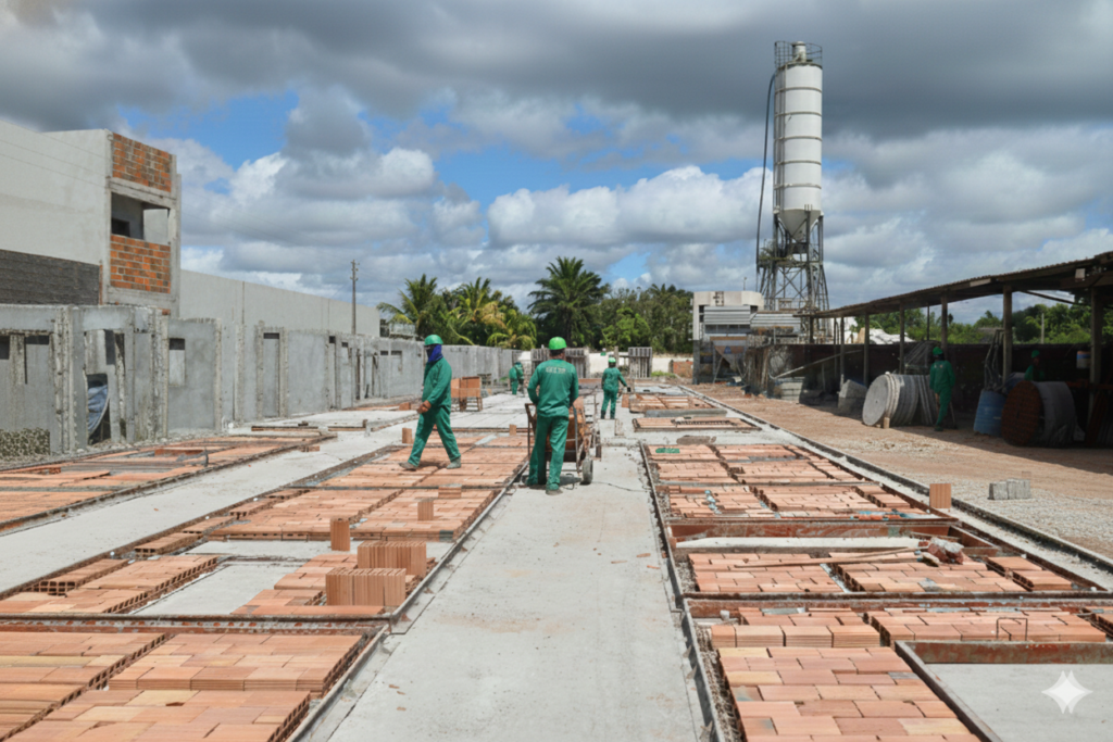 Trouxemos a inteligência da indústria para dentro do canteiro de obras. Nossa tecnologia exclusiva de pré-fabricados e construção modular permite que sua casa seja entregue com agilidade recorde, sem abrir mão do design moderno e da segurança que sua família merece. É a união perfeita entre a solidez do concreto e a leveza de viver em um condomínio planejado.